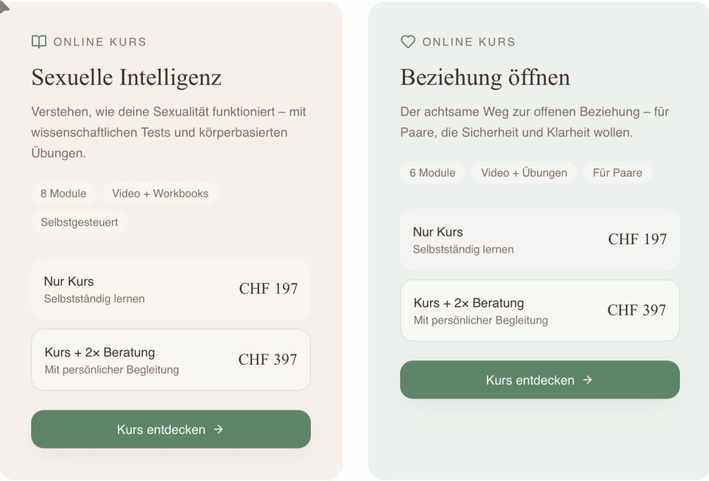Ich weiss aus eigener Erfahrung, wie schnell man bei Sexualität und Beziehung in Druck, Zweifel oder Problemdenken gerät. Gleichzeitig habe ich gelernt, wie viel möglich wird, wenn man anfängt, sich selbst und die eigenen Muster besser zu verstehen. Genau diese Erfahrung prägt meine Arbeit: ehrlich, neugierig und ohne Schubladen.
